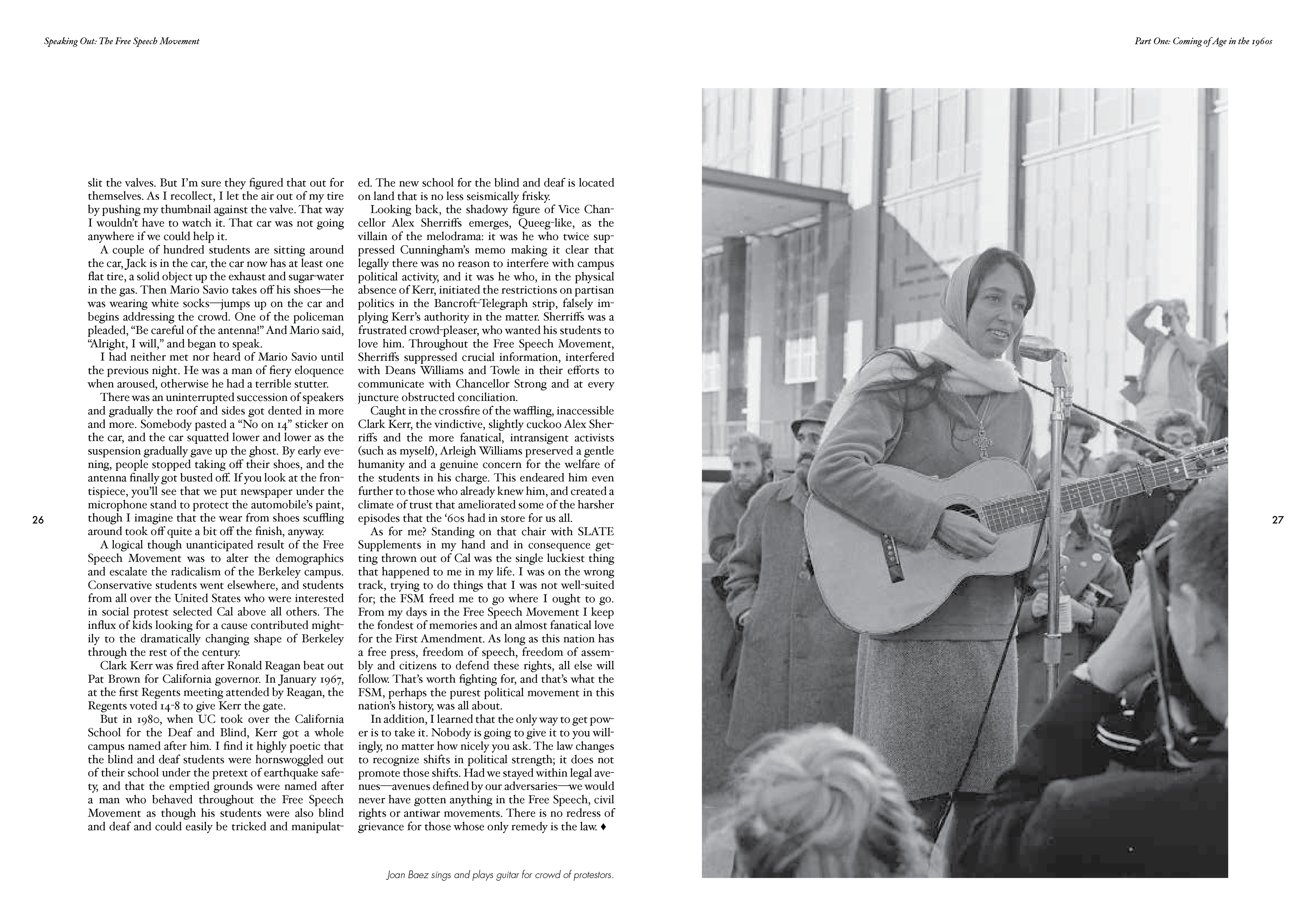 In Part 1, Speaking Out details the Free Speech Movement that erupted on the campus of UC Berkeley in 1964. Part 2 connects the FSM to the present day, living as we do in an unstable political time where censorship and hate speech cause disillusionment and cynicism, especially among the young. This 48-page hand-bound book utilizes a minimal color palette and bold typography to achieve a high-contrast, clean look.